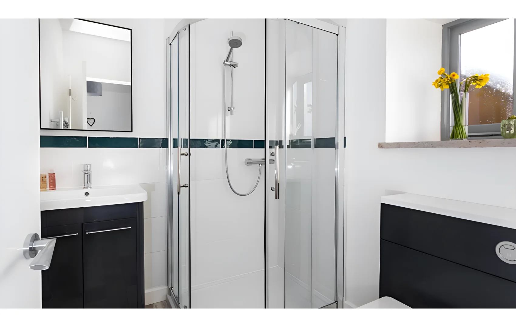 The bedroom boasts a king size bed with drawers underneath for all of your luggage. Also bedside tables and a storage unit for hanging your clothes.
