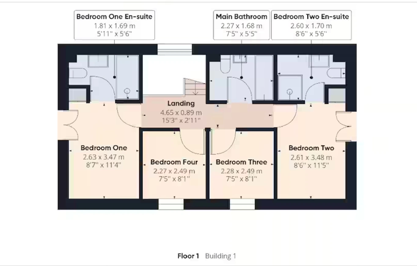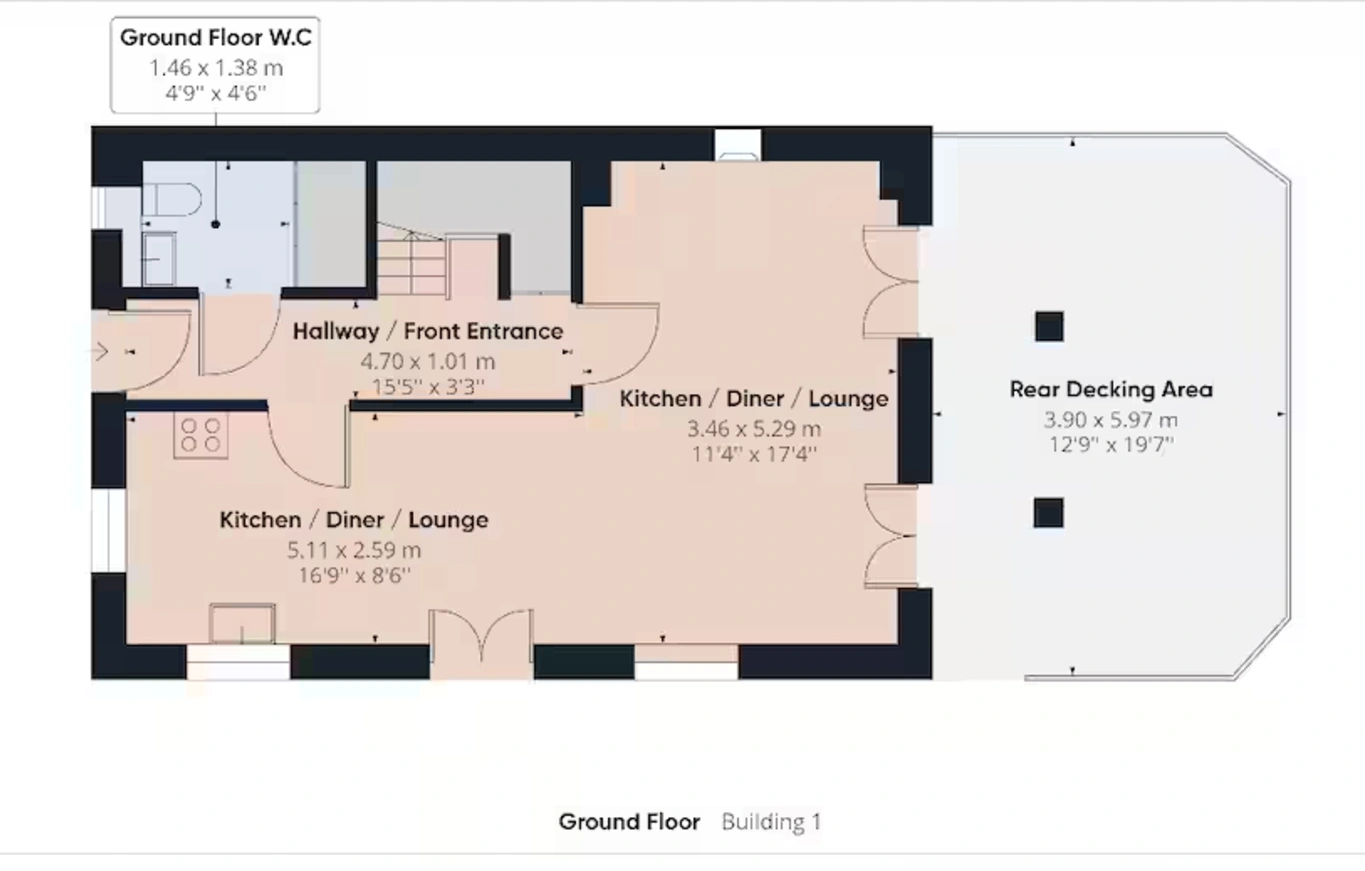 On the ground floor, you’ll also find a family toilet that includes a washing machine and tumble dryer.