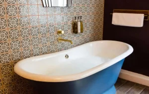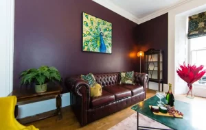 The Tricky Woo Suite is a large one bed apartment with kitchen, dining area, large lounge with a sofa bed, and a fabulous bedroom with feature roll top bath and separate shower room. With sumptuous décor this apartment oozes mid-century style and sophistication.