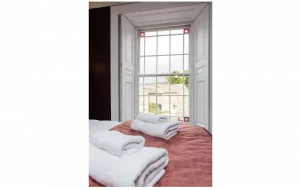 The Bathroom features a roll top bath, with shower screen and shower above. There is a contemporary wooden shelf unit with oval wash basin plus WC. We also provide fabulous organic, vegan and paraben free shower gel, shampoo, conditioner, hand wash, and hand / body lotion by H2K of Harrogate.Note: The Darrowby Suite feature the original window shutters in place of Roman blinds which are used in the other apartments, where the window shutters are no longer operational.